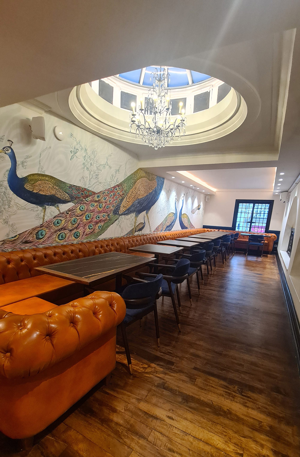 Situated in an area known for its rich history and thriving business community, the renovation of 42 Holborn required a detailed approach to modernize the space while maintaining its character. The project involved a full overhaul of the restaurant's infrastructure, including the installation of new plumbing and electrical systems to meet contemporary standards for a busy commercial kitchen and dining environment.